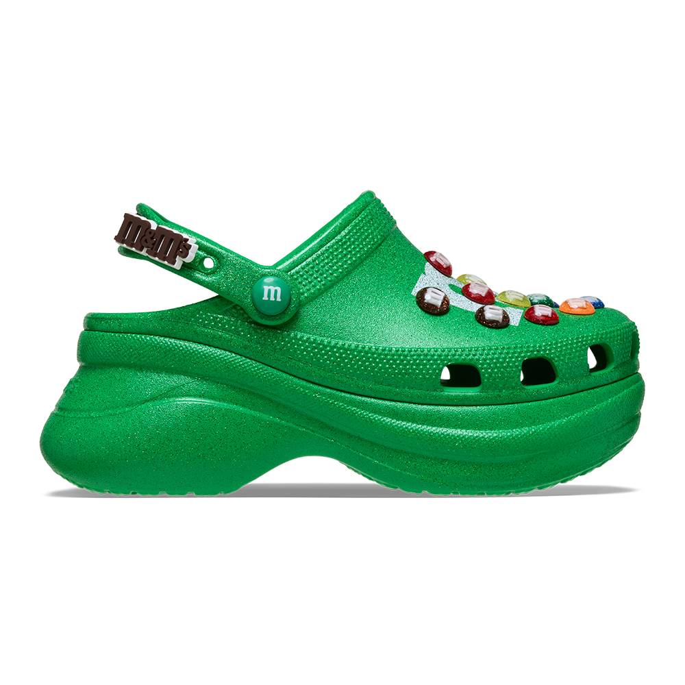 Fabulously fun and uncommonly comfortable. These must-have M&M’S x Crocs Bae Clogs are elevated in more ways than one. The bold platform heel adds just the right amount of lift to the bright green clogs that are enrobed in an all-over glitter treatment, sprinkled with M&M’S Jibbitz™ charms, and stamped with our iconic ‘m’ logo. The playful and bold M&M’S x Crocs Capsule Collection combines the best of both brands into a celebration of comfort and fun. Don’t drag your feet – get your hands on these limited-edition, must-have clogs.