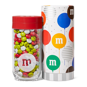Jar up all the birthday magic with help from M&M’S® chocolate candies. Your own custom blend comes inside our Gift Jar, ready to make someone's special day even sweeter. And like icing on the birthday cake, you get to choose a lid to top it off. Pick between a red or silver branded lid and it will be packaged into a birthday themed tube.