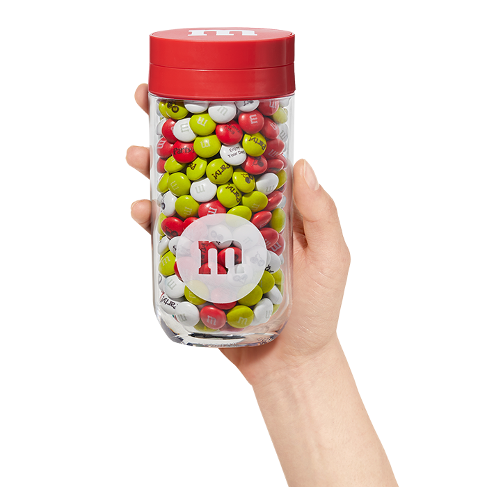Each jar contains 12.7 oz (360 g) of personalized M&M’S, about 13 servings of M&M’S chocolate candies.