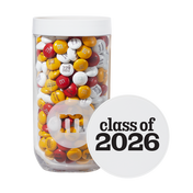 This clear gift jar is filled with 12.7 oz (360g) of personalized M&M'S chocolate The graduation year is printed on the gift jar lid in collegiate handwriting Personalize the M&M’S candies by choosing up to 3 colors, add messages, clip-art and even a photo Ideal for grad gifts and centerpieces for graduation parties