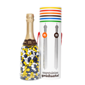 Show graduates how special they are with customized M&M’S® chocolate candies that are as unique as their accomplishments. Choose up to 3 colors from an assortment of over 20 (you can choose school colors!) and add personal photos, messages, a date, or graduation clip-art. Our fun, replica bottle is filled with your custom candy creation and is ready-to-gift in a limited-edition graduation themed gift tube. The fun surprises continue to unfold as your graduates discover the bottle flips upside-down to become a serving flute. A sweet toast to a bright future.