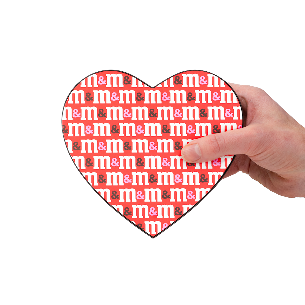 Personalized gifts are the most memorable. Our heart-shaped gift box is decorated with our signature branded pattern in red and pink. Open the lid and find “LOVE” on the inside. This gift box is filled with your choice of personalized M&M’S® chocolate candies. They say all you need is love. But a little chocolate doesn’t hurt.