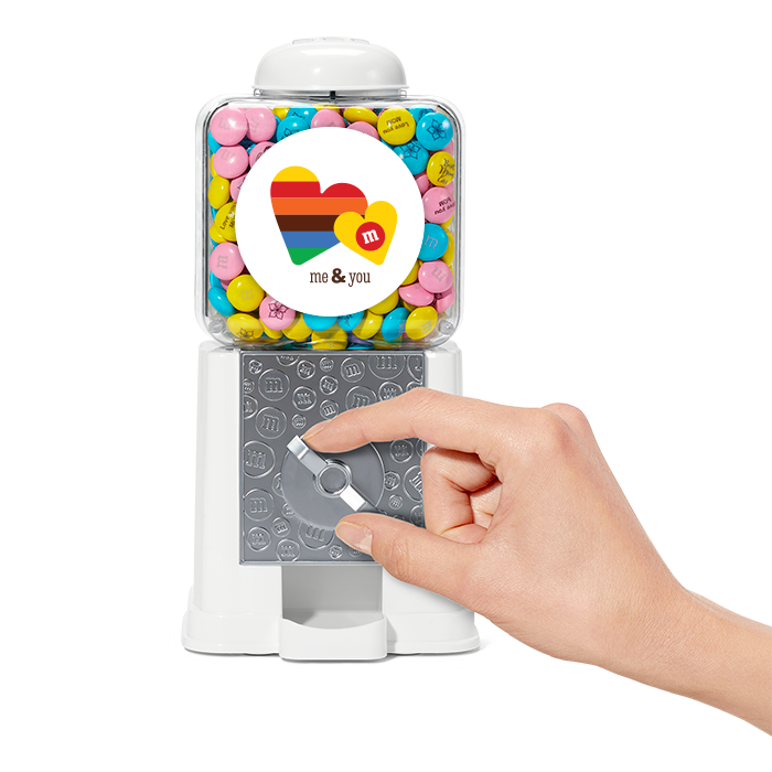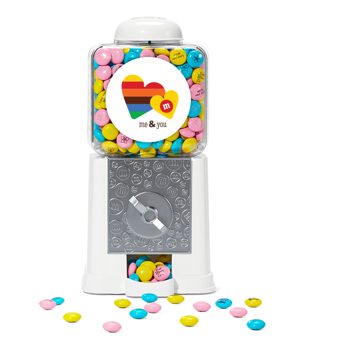 Me & You & Fun & Surprises & Gifts & Chocolate. Customize M&M’S® chocolate candies with a photo, names, messages, or clip-art and we will send a pound of them to fill up this reusable, keepsake dispenser. Dispenser only to be used with Milk Chocolate M&M'S.