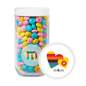 Celebrate a unique connection with a unique gift. The Me & You Gift Jar is filled with personalized M&M’S® chocolate candies customized by you for your lucky gift recipient. Choose colors and add a photo, names, messages, a date, or clip-art. The clear jar showcases your personalized M&M’S® candies and is topped with the lid featuring multi-colored hearts, our iconic m logo and the words “me & you.”