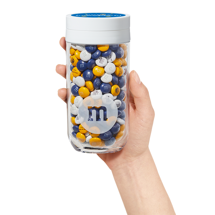 White goes with everything! This M&M’S® branded gift jar is filled with personalized M&M’S inside. Turning this into a totally personalized gift couldn’t be any easier! Simply choose up to 3 M&M'S® candy colors from an assortment of 24, add your own messages, clip-art and upload a photo, and you've got the personalized gift that will get the most attention.