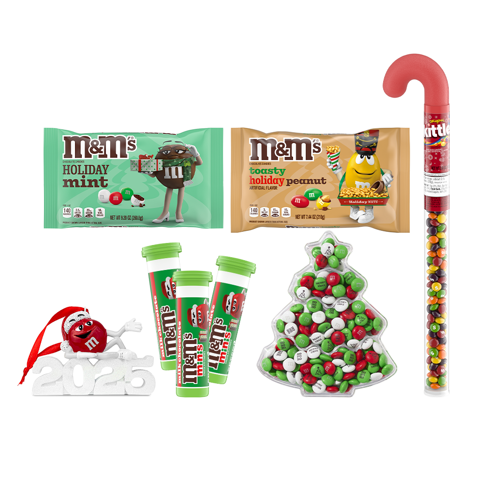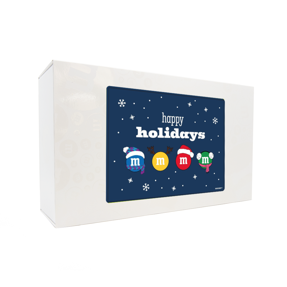 This large gift box will wow your lucky gift recipients the moment they tip open the lid and discover a thrilling variety of color and flavor. Four different types of M&M’S® candies and a Skittles® candy cane provide enough treats to share. The sweet treats are paired with our collectible 2025 M&M’S® ornament, which will be a keepsake for years to come. No need for wrapping, the outside of the gift box is designed with a winter "happy holidays" design. Send this gift to friends, family, and offices, or order it for your own holiday parties.