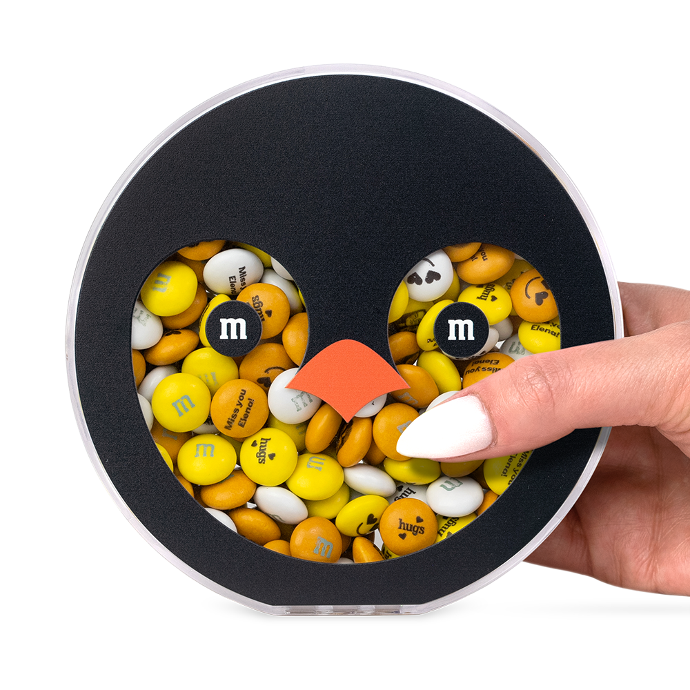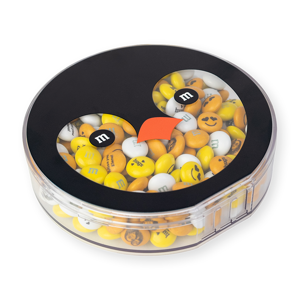 Give the gift of a cool winter's night with our Round Penguin Gift Box, filled with your favorite M&M'S candies. The clear face of this penguin pal shows off your customized candy blend, so go ahead and add some personality with clip-art, text, and photos. It's a holiday gift that's sure to waddle its way into someone's heart.
