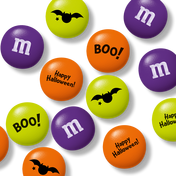These M&M’S® chocolate candies favor pack are perfect for Halloween parties, office goodies, or to give to trick-or-treaters. This set of 30 favors comes pre-designed with orange, purple and electric green candies, printed with a bat, “BOO!” and “Happy Halloween” clip art. This year’s limited-edition favor packs feature Red dressed up in a purple cape with the word “BOO!” on the front of the pack.