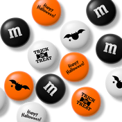 Our Halloween Bulk Candy mix combines black, orange, and white M&M’S® chocolate candies printed with black bats, Trick or Treat, and Happy Halloween. Use this blend to fill a Halloween party treat bowl. Ready-to-go, these colorful candies can be added to snack mixes or popcorn and used to create custom party favors or trick-or-treat bags.