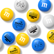 This Hanukkah blend comes pre-printed with “Happy Hanukkah” text, dreidels and a menorah on white, blue and yellow M&M’S Includes 2 lbs (21 servings) of pre-designed Hanukkah M&M’S/li>