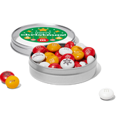 A holiday token to bring moments of joy at any time throughout the season. Our Christmas favor tins come with a festive green design that says “merry christmas” in the center surrounded by ornaments and stars. Create customized M&M’S® chocolate candies with colors, a photo, messages, or clip-art. These little sweet treats are great for your guests at your holiday celebration or for an additional stocking stuffer.