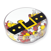 'Tis the season to be jolly! Spread holiday cheer with our Round Santa Gift Box, a merry way to share your love and festive spirit. Fill this charming gift box with customized M&M'S® chocolate candies, personalized with clip-art, text, and photos to make it a one-of-a-kind Christmas present. The clear window lets your personalized treats take center stage, making it a delightful holiday gift or stocking stuffer.