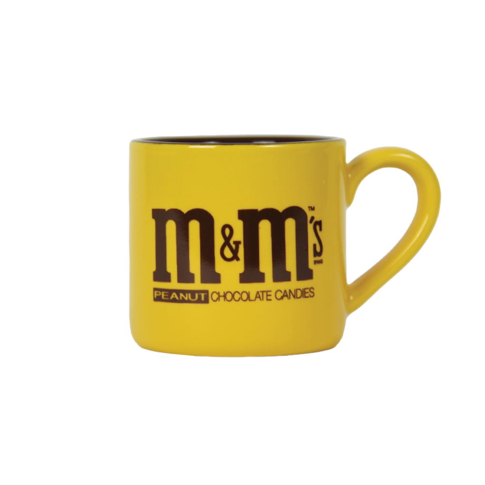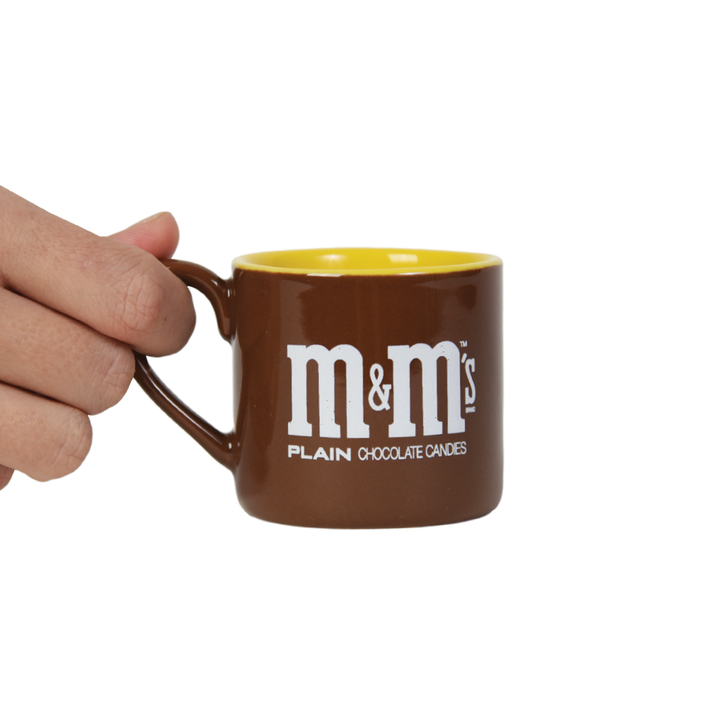 Connect with a friend and share an espresso, M&M’S® style. Our set of two coordinating ceramic espresso cups is part of our heritage collection, which celebrates our history with our iconic look. Both espresso mugs showcase our vintage logo; the brown mug says “plain chocolate candies” and the yellow mug says “peanut chocolate candies.” Packaged in a yellow gift box, this set of espresso cups is a fun and unique gift for coffee lovers or those who appreciate retro style.
