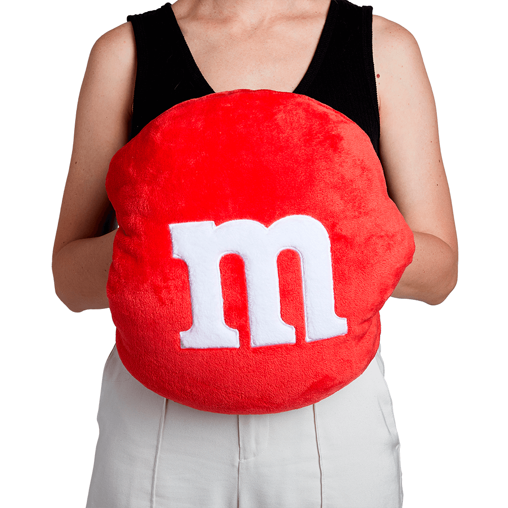 Comes in M&M’S classic red or blue color with the iconic “m” logo on the hood