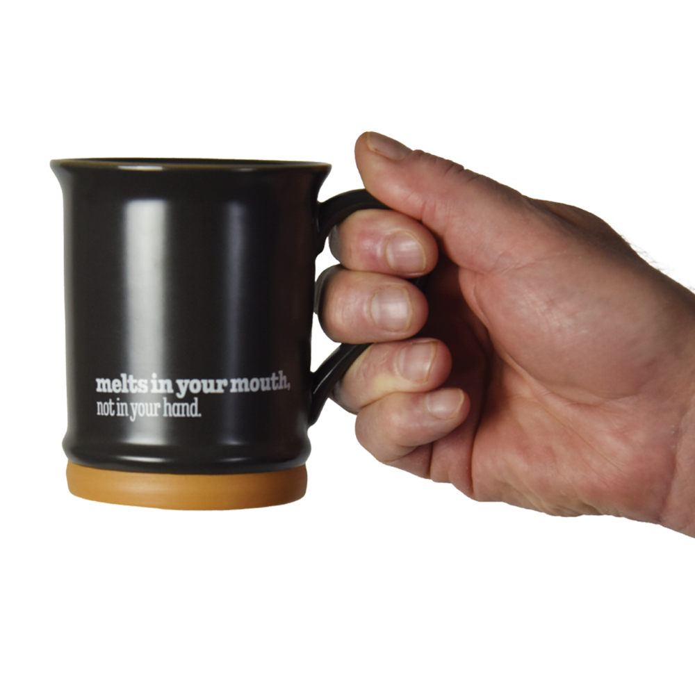 Classic and cool. Part of our Heritage Collection, this charcoal gray mug has a matte finish on the outside with our vintage logo on one side and our original tagline on the other: melts in your mouth, not in your hand.