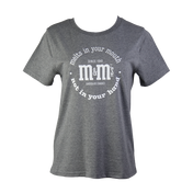 Time to go retro with this nostalgic graphic tee. Our vintage M&M’S® logo is surrounded by our iconic slogan, “melts in your mouth, not in your hand.” Available in toddler, youth, men’s, and women’s sizes, the soft heather gray t-shirt is a fun gift for all your friends and family.