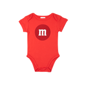 Available in 4 M&M’S® colors: red, yellow, green, and blue Solid color infant onesie with m logo in a circle on the chest Snap closure at bottom Fun, unique gift for baby showers, newborns, or birthdays for boys and girls
