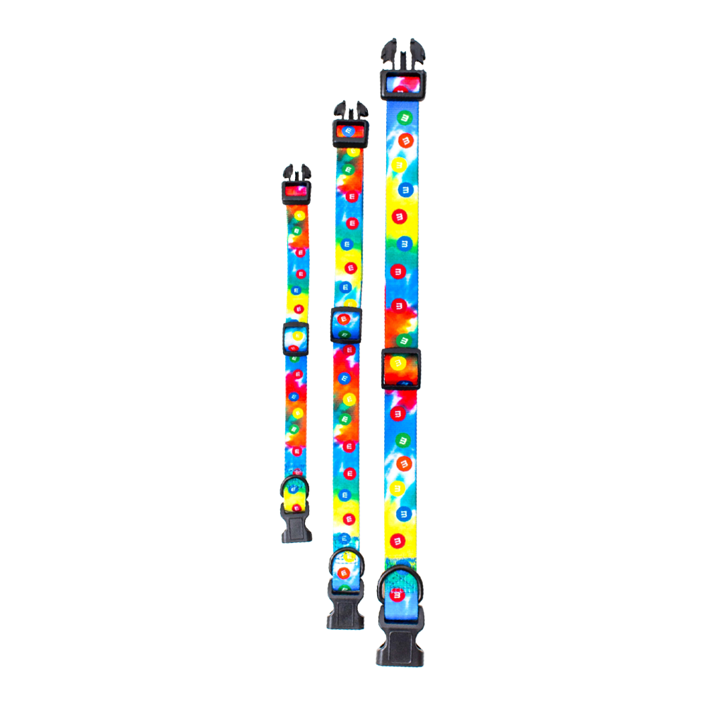Help your furry friends show off their groovy side with this fun and funky M&M’S Tie-Dye Pet Collar. The colorful pattern with secure black buckle comes in small, medium, and large to fit cats and most canine companions