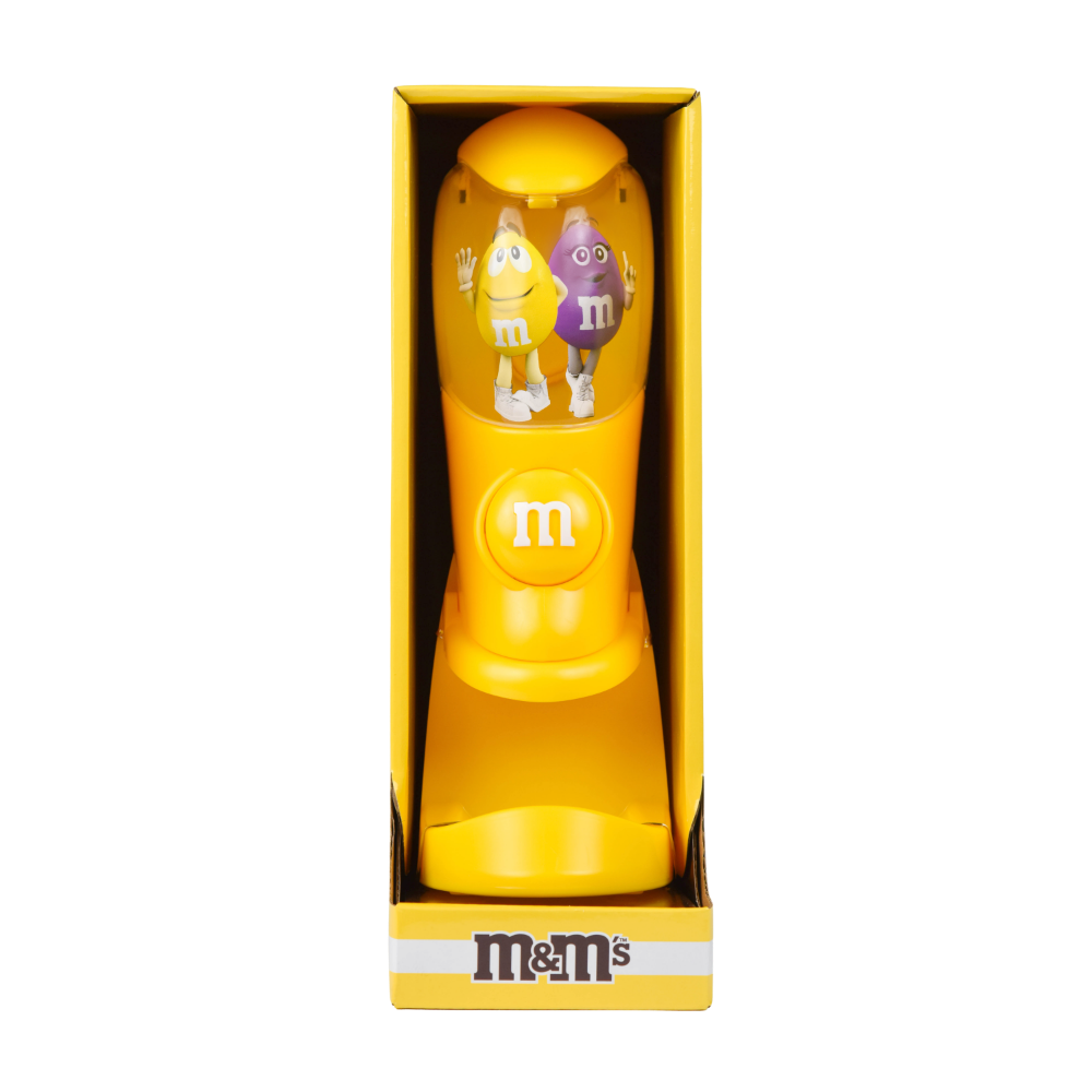Here's your new desk sidekick: the 3-in-1 M&M'S candy dispenser! This colorful candy companion can sit pretty on your side table, tag along in your bag, or even chill on your fridge with its handy magnets. With the press of a button, it dispenses a tasty treat to brighten up your day.