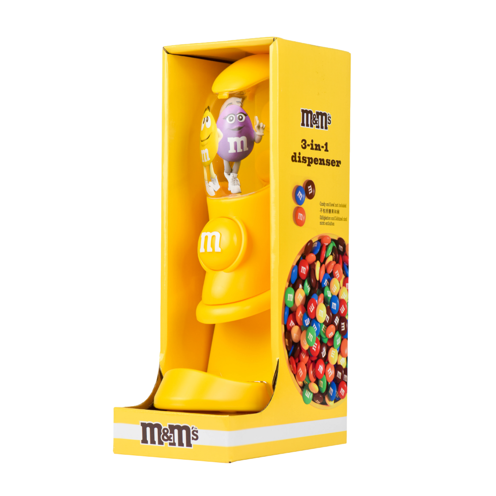 Make the most of your M&M'S® chocolate candies with this versatile 3-in-1 Candy Dispenser. You can place it on a side table, hold it in your hand, or stick it to your fridge using the built-in magnets. With a simple press of a button, you'll be treated to a colorful snack.