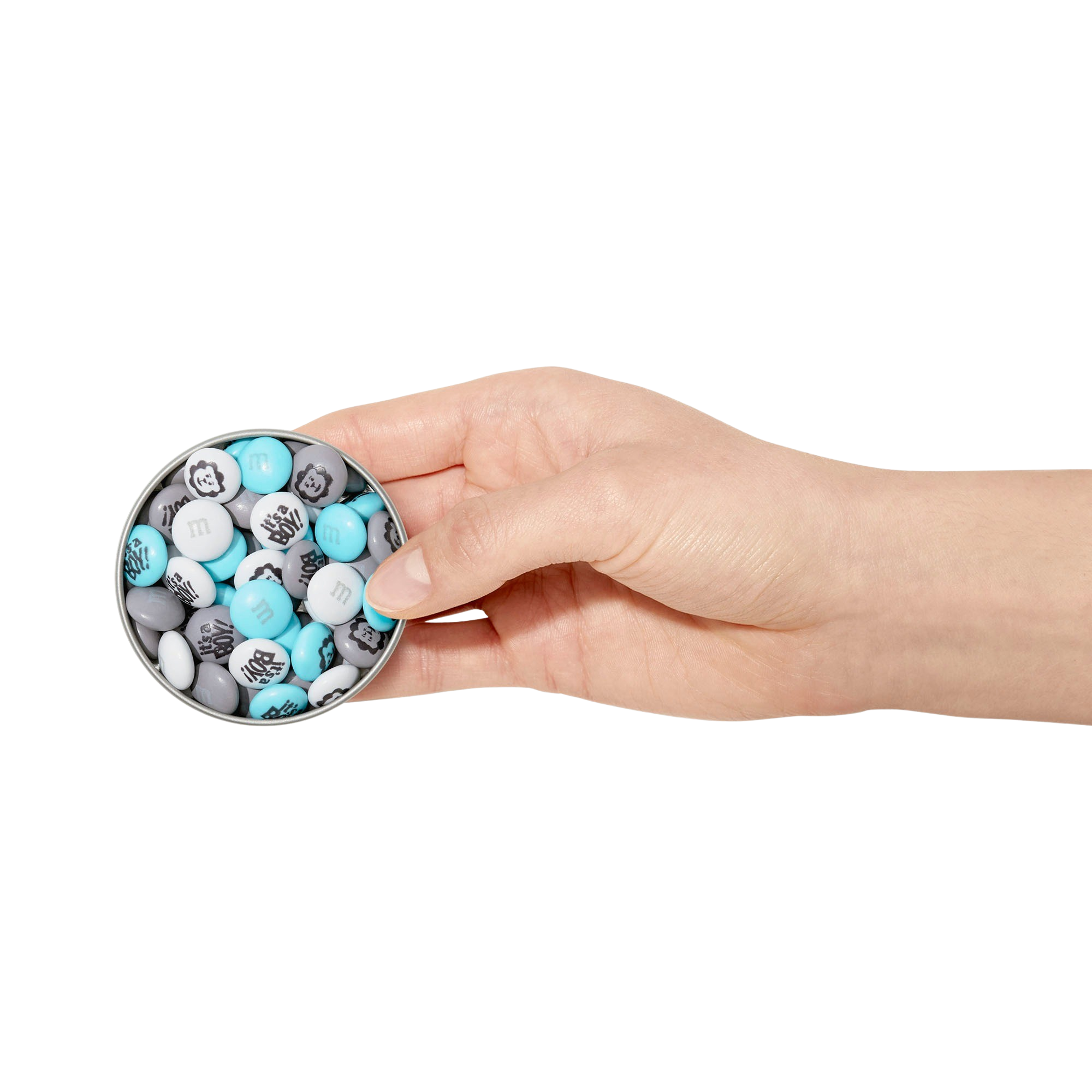 Candy: Each tin contains about 1.5 oz (42.5 g) about 1 serving of M&M’S candies