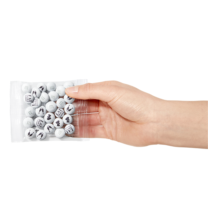 Let your wedding guests know you’ve got good taste. Our Pre-designed Wedding Favor Packs of M&M'S® chocolate candies are no fuss, but all fun. Plus, they’re all ready to RSVP “YES” to your special day. They are event ready with images of Two Hearts, Bubbly Glasses, plus the words "EAT Drink & BE MARRIED!".