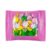 Favor pack filled with 0.75 oz (21 g) of personalized M&M’S® chocolate candies. Personalize M&M’S® candies with colors, dates, names, photos, messages, or clip-art. Pink favor pack with tulips over a clear window that shows personalized M&M’S® candies inside. Perfect for spring parties, birthdays, pink-themed parties, Easter celebrations, Easter brunch, Easter hunts, and Easter baskets. Minimum order of 20, then sold in increments of 5.