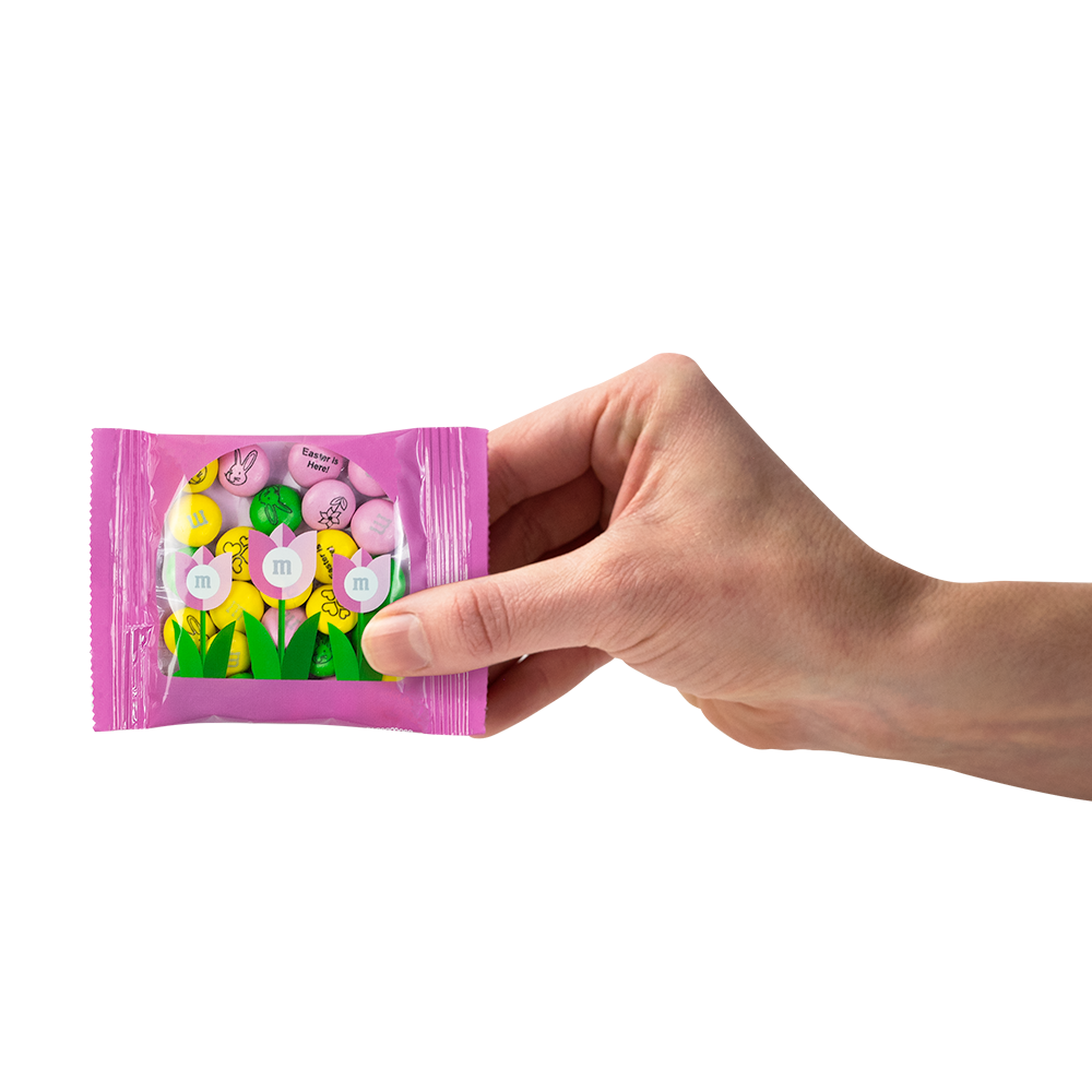 Signs of spring are everywhere… even on our limited-edition party favors. Each pretty, pink, packet is filled with your personalized M&M’S® candies. A perfect pick for spring wedding favors, Easter parties or brunch, spring birthdays, or corporate party favors. Personalize M&M’S® candies for the occasion by choosing colors to match your party theme and adding photos, logos, dates, messages, or clip-art.