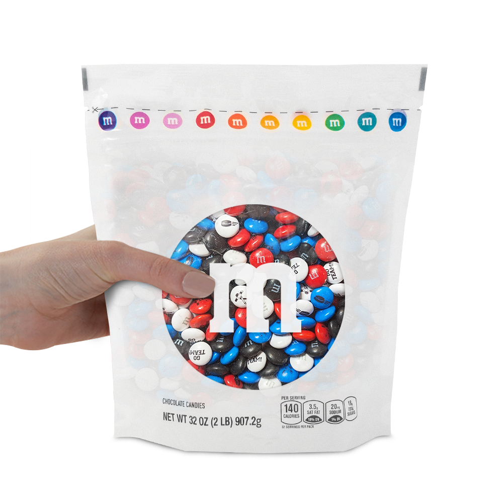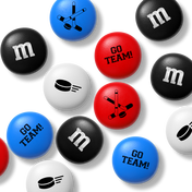 This neutral color hockey design will fit any team or theme. Black, red, blue and white candy has hockey sticks, hockey pucks, and “Go Team!” printed directly on the M&M’S milk chocolate candies. Add fun with edible party décor! Fill candy bowls, add to your centerpieces, decorate cakes, or create DIY hockey party decorations.
