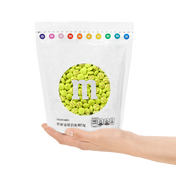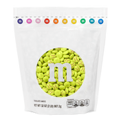 • Pre-designed lime green M&M’S® chocolate candies printed with red stitching.