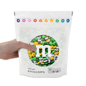 Our St. Patrick’s Day blend includes green, dark green, dark yellow, and white M&M’S® chocolate candies printed with shamrocks, steins, and a Happy St. Paddy’s Day message. The pre-designed 2 lb bulk bag and M&M’S® branded scoop can be used to fill party bowls, create St. Patrick’s Day party favors, or bake treats with seasonal flair. If you can’t have a pot of gold, a bowl of M&M’S® chocolate candies is the next best thing.